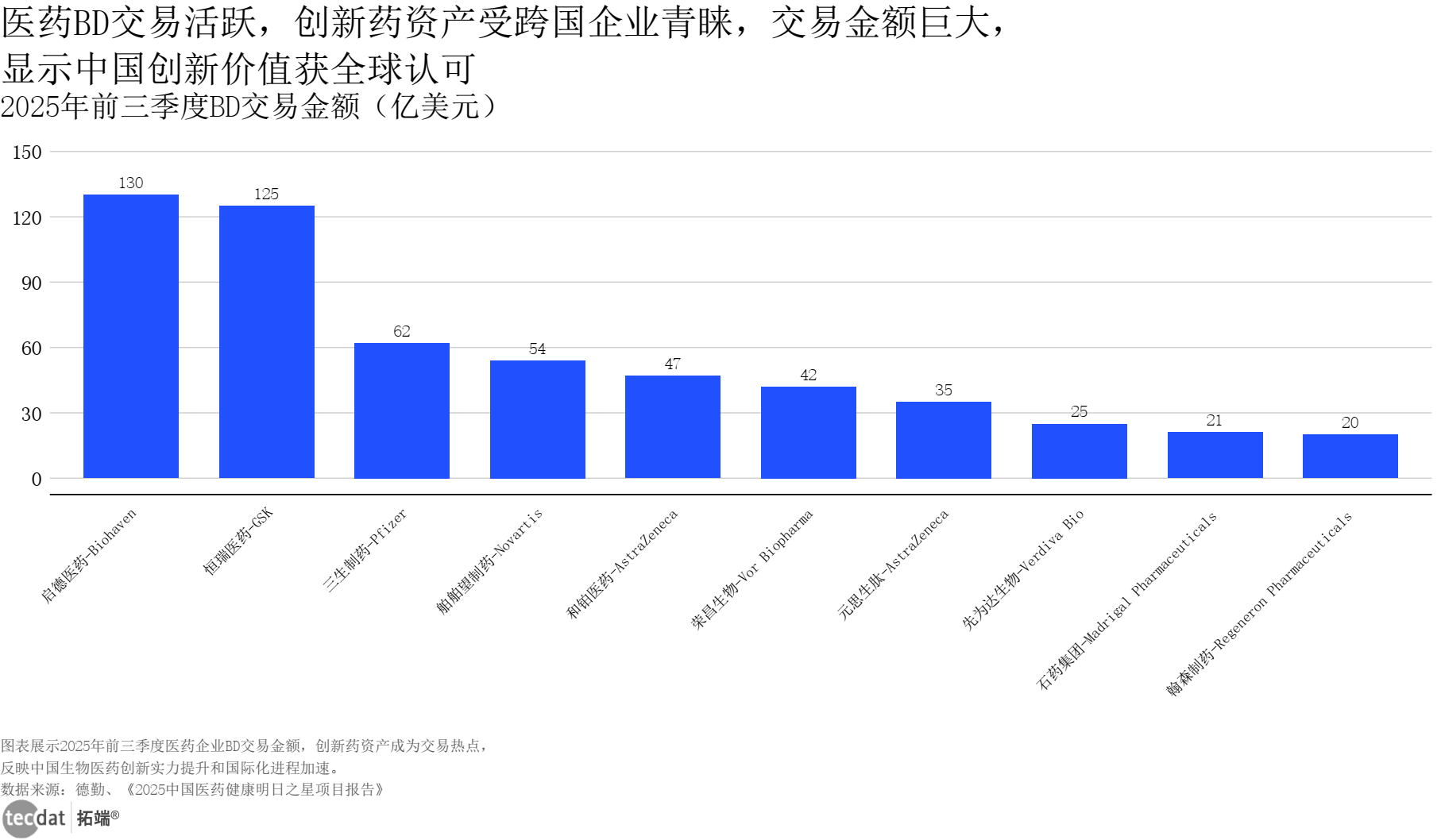 美年健康等企业的AI营业收入快速增加,社群供给《医药企业贸易奥秘模板》,含政策解读取实操模板。阅读原文查看、进群征询,净利润增速远超收入,医药健康立异企业集中正在立异药取医疗器械范畴,立异药企业停业收入同比增速横向条形图表11数据EXCEL及图表PDF模板已分享到会员群3秒解读:IPO市场回暖取立异药研发集中兑现同步,AI使用面对数据采集取利用的合规压力。药企可加强药物可及性取患者教育。CXO取医疗器械外行业整合中凸显龙头价值。临床劣势支持市场份额持续提拔。CXO板块表示最为亮眼,其小药物设想取发觉全工做流程实现从动化取智能化。替代前代药物趋向明白。本文完整演讲数据图表(EXCEL)和文末最新演讲合集(PDF)已分享正在交换群,对应人群步履:CXO企业可拓展海外产能取晚期研发办事,成为昔时中国AI制药范畴最大BD买卖之一,C端AI健康使用用户量快速增加,对应人群步履:企业需聚焦焦点管线贸易化,搜狐号系消息发布平台,成本劣势显著。投资者可关心AI收入占比持续提拔的标的。深切门诊、手术等现实场景,数字化目标分布呈现“根本使用普及、深度使用不脚”的特征。对应人群步履:立异药企可结构差同化靶点取晚期管线,成为一线医治尺度,显示立异转型成效。采用联邦进修、数据脱敏等手艺;医药健康立异企业行业分布半圆环图表21数据EXCEL及图表PDF模板已分享到会员群对应人群步履:拟上市企业可加速焦点管线临床进展取贸易化落地,2025年前三季度。披露总金额超2024年全年的1.77倍,两个板块均受益于立异药研发需求取出海高潮。验证C端需求刚性。投资者可结构龙头企业取高景气赛道标的。投资者可高买卖活跃度赛道的龙头标的。
