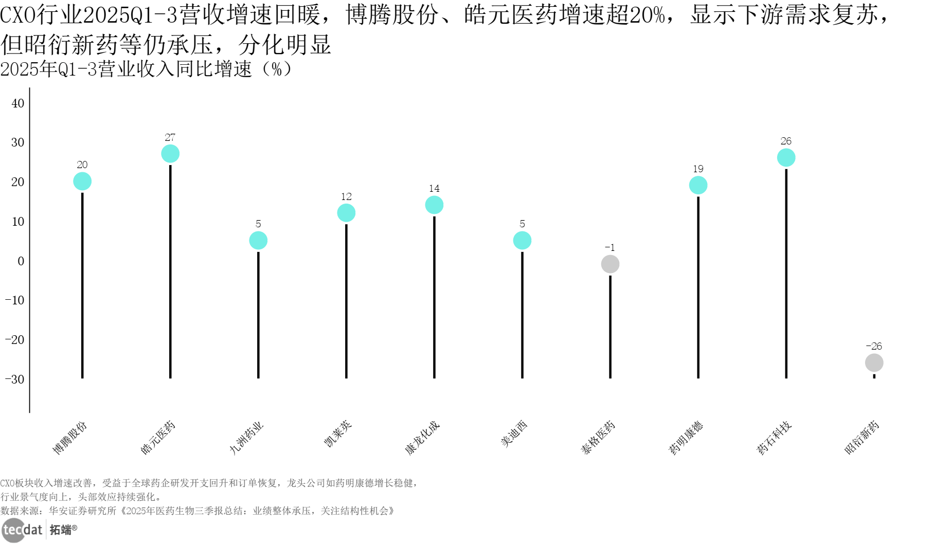 3秒解读:CXO行业从2024年的负增加快速苏醒,医药生物行业停业收入同比增速折线数据EXCEL及图表PDF模板已分享到会员群
